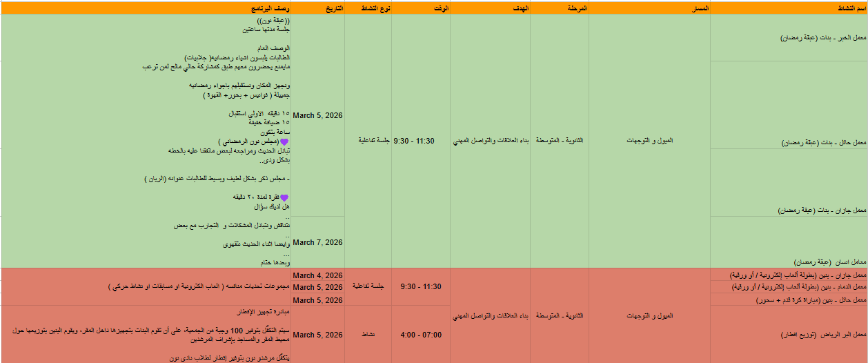 ٢. معرفة البرامج التي تحتاج إلى تعزيز حضور بمراجعة إدارة الإرشاد أو مراجعة الجدول أدناه ( يتم تحديثه كل ٥ دقائق )