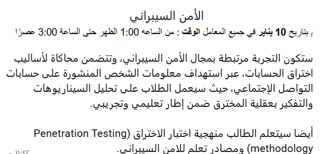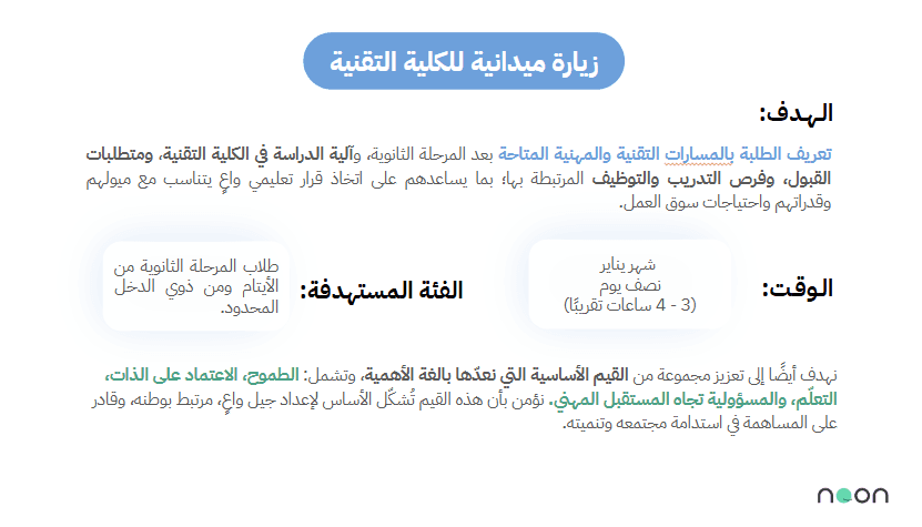( تضمين أي معلومات قد تزيد من حماس الطالب بناء على الفئة العمرية أو المسار أو الاهتمامات والملف الشخصي للطالب)